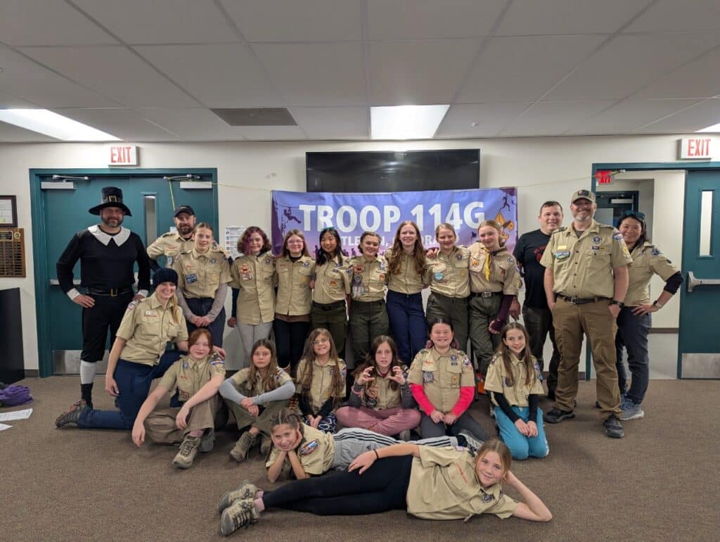 Scouting in Troop 114G empowers girls and young women to utilize this inner strength, find their place in a team, and lead by example, while growing into strong members of society.